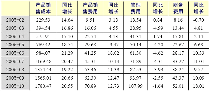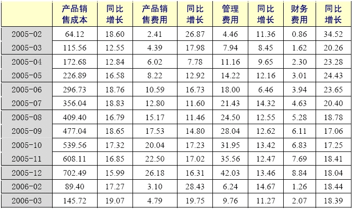 2006年,水泥制造業(yè)成本上漲壓力較大,行業(yè)成本增長(zhǎng)相對(duì)較快。由于銷(xiāo)售收入增速加快,銷(xiāo)售成本增速及費(fèi)用也相應(yīng)上升。 1季度,水泥制造業(yè)累計(jì)產(chǎn)品銷(xiāo)售成本為494.64億元,同比增長(zhǎng)29.85%,增幅比上年同期上升了近13個(gè)百分點(diǎn);累計(jì)產(chǎn)品銷(xiāo)售費(fèi)用為19.33億元,同比增長(zhǎng)21.37%,增幅比上年同期上升了16.82個(gè)百分點(diǎn);累計(jì)管理費(fèi)用為31.34億元,同比增長(zhǎng)10.98%;累計(jì)財(cái)務(wù)費(fèi)用為16.14億元,同比增長(zhǎng)23.16%。