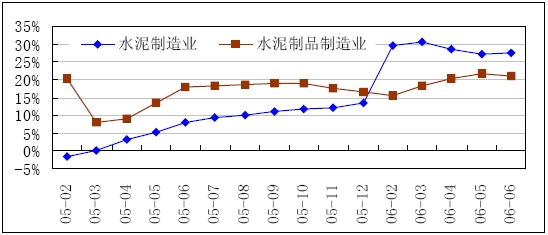 2006年1-6月,水泥制品制造業(yè)累計(jì)工業(yè)總產(chǎn)值為463.84億元,同比增長(zhǎng)20.97%,增幅比上年同期上升3.07個(gè)百分點(diǎn);實(shí)現(xiàn)產(chǎn)品銷(xiāo)售收入427.52億元,同比增長(zhǎng)22.86%,增幅比上年同期上升6.19個(gè)百分點(diǎn)。