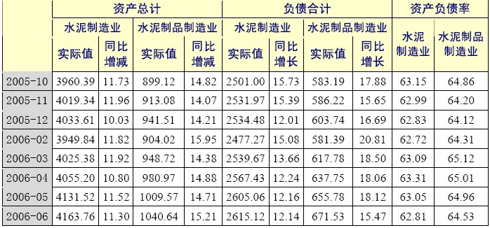2006 年上半年以來水泥制造業(yè)和水泥制品制造業(yè)資產(chǎn)、負(fù)債情況