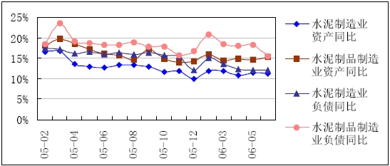 2006-2006年水泥制造業(yè)和水泥制品制造業(yè)資產、負債同比增長情況