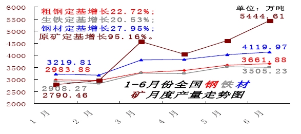 2006年1-6月鋼鐵材礦月度產(chǎn)量