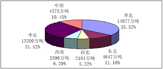 2006年全國粗鋼產(chǎn)量大區(qū)分布圖