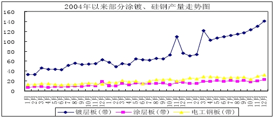 2004-2006年部分涂鍍、硅鋼產(chǎn)量走勢