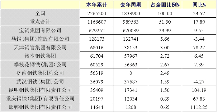 2006年,全國(guó)涂層板帶產(chǎn)量226.52萬(wàn)噸,同比增長(zhǎng)23.52%,重點(diǎn)統(tǒng)計(jì)的企業(yè)產(chǎn)量116.66萬(wàn)噸,同比增長(zhǎng)17.89%,產(chǎn)量占全國(guó)產(chǎn)量的51.50%,較上半年略有下降,我國(guó)涂層板帶生產(chǎn)企業(yè)主要以民營(yíng)企業(yè)為多,生產(chǎn)比較分散,重點(diǎn)統(tǒng)計(jì)單位中寶鋼產(chǎn)量67.93萬(wàn)噸,占全國(guó)產(chǎn)量的29.99%,馬鋼12.82萬(wàn)噸,占全國(guó)產(chǎn)量的5.66%。
