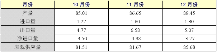 2006年10月份,氧化鋁價格下跌,為電解鋁打開了巨大的盈利空間,前期閑置的電解鋁產(chǎn)能紛紛啟動,10月份單月產(chǎn)量突破了85萬噸,4季度平均月增加產(chǎn)量3.11%,4季度產(chǎn)量較3季度產(chǎn)量增加了8.43%。而4季度進口量比3季度下降了50.42%,出口量也有所減少,這樣4季度的月平均表觀供應(yīng)量比3季度增加了11.02%。按照安泰科咨詢公司對全年鋁消費量867萬噸的預(yù)測,則月平均消費量應(yīng)為72萬噸,這樣看來,4季度鋁的供應(yīng)略有過剩。