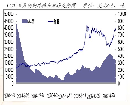 2007年3月份我國(guó)進(jìn)口精銅達(dá)202,955噸,環(huán)比增長(zhǎng)了36.5%,同比增長(zhǎng)則高達(dá)148.5%;1~3月份的累計(jì)進(jìn)口量為483,385噸,同比增長(zhǎng)134.8%。07年1~3月份,中國(guó)銅進(jìn)口強(qiáng)勁增長(zhǎng)是支撐2007年銅價(jià)回升的最大驅(qū)動(dòng)力。