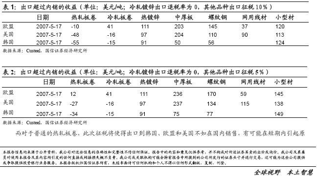 而對于普通的熱軋板卷,此次征稅將使得出口到韓國、歐盟和美國不如在國內(nèi)銷售,有可能在短期內(nèi)引起原來出口到這些國家鋼材的回流。對于普通冷軋板卷,繼續(xù)出口歐盟仍然有利可圖,但是繼續(xù)出口美國和韓國將會不如國內(nèi)銷售劃算,有可能會引起部分鋼材回流。