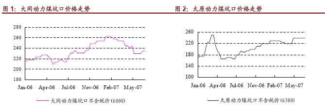 今年7月底,太原動(dòng)力煤坑口價(jià)(不含稅)為240 元/噸,接近兩個(gè)月維持在此價(jià)位,但較5 月初和去年年底都上漲了20 元/噸。