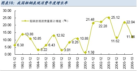 預(yù)計(jì)2007 年存在2535 萬(wàn)噸粗鋼需要進(jìn)出口來(lái)進(jìn)行平衡。相比今年3000 萬(wàn)噸的折合粗鋼凈出口相比,我們認(rèn)為實(shí)現(xiàn)的可能性還是很大的。未來(lái)更多的是體現(xiàn)在生產(chǎn)、需求、進(jìn)出口之間的一種基本平衡。