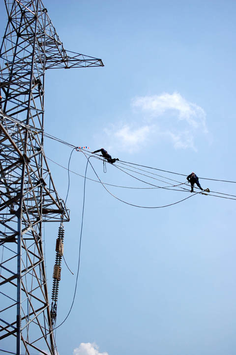 架線人 。保苍拢橙,國(guó)家直流自主化依托工程———±500千伏貴廣二回直流雙極投入試運(yùn)行。這條近1200千米的輸電線路是黔電送粵的第二條直流大通道,可使西電東送南通道的最大輸電能力達(dá)到1650萬(wàn)千瓦,這個(gè)數(shù)字比聯(lián)網(wǎng)之初增長(zhǎng)了二十倍。
