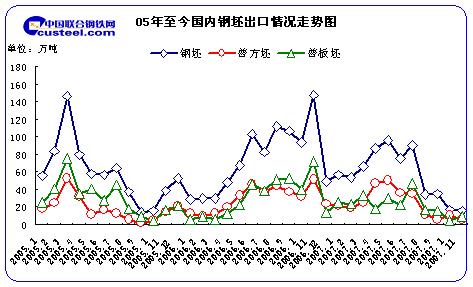 2007年初由于國際鋼坯價格逐步上調(diào),鋼坯出口效益高于國內(nèi)市場,調(diào)動了鋼坯企業(yè)的出口積極性;年初開始國內(nèi)各大鋼坯生產(chǎn)企業(yè)紛紛將鋼坯資源出口,直至今年5月份我國月出口鋼坯資源95.84萬噸,達到全年最高點,國內(nèi)鋼坯資源一時依托于外貿(mào)消化。上半年由于國內(nèi)鋼坯產(chǎn)品出口增長過快,外貿(mào)依存度過高,導致國內(nèi)低端加工制造業(yè)的過度膨脹、污染排放過多、能耗水平過高、貿(mào)易順差急劇擴大,鋼坯材的頻頻出口引發(fā)了國家對鋼材殘品出口的關(guān)注,為此國家不斷進行宏觀調(diào)控,6月份國家針對鋼坯產(chǎn)品出口加增5%的關(guān)稅,關(guān)稅增至15%,由于鋼坯出口稅率的提高,鋼坯出口成本增加,出口利潤大幅縮水。但出口稅率政策的出臺,并沒有抑制鋼坯大批量出口的前進腳步,國內(nèi)各地貿(mào)易商為完成前期接收的合同量,紛紛趕在出口退稅執(zhí)行之前將鋼坯資源轉(zhuǎn)向保稅區(qū)倉促,采取集中出口,來規(guī)避因出口稅率調(diào)整所增加的經(jīng)營成本。7月份在國家宏觀調(diào)控下,我國方坯資源出口已有所限制,但由于國外市場對板坯的需求增加及前期鋼坯保稅區(qū)倉促顯現(xiàn)成效,導致7月份國內(nèi)板坯資源與上月環(huán)比增長106.4%、鋼坯環(huán)比增長19.59%。進入8月以后國內(nèi)鋼坯市場價格上漲逐步刷新歷史,導致貿(mào)易商出口利潤大幅縮減,甚至在某些時間段里,國內(nèi)鋼坯價格與國際市場價格持平。國內(nèi)鋼坯資源因出口利潤低于國內(nèi)市場,鋼坯出口無利可圖。大部分鋼坯資源轉(zhuǎn)向國內(nèi)市場。最新數(shù)據(jù)顯示,10月份我國出口鋼坯資源17.75萬噸,環(huán)比降低49.92%,出口量持續(xù)回落,國家提高鋼坯出口關(guān)稅政策成效顯著,出口環(huán)比數(shù)逐月遞減。這正說明我國鋼坯資源出口情況正在向良性轉(zhuǎn)化。臨近年關(guān),國家為了能夠讓國內(nèi)鋼坯市場維持穩(wěn)定發(fā)展,再次出臺新政,將鋼坯出口關(guān)稅上調(diào)至25%,進而對鋼坯來年出口資源得以控制,有效抑制出口反彈,同時為出口情況正處于良性轉(zhuǎn)化的鋼坯市場奠定了良好基礎,從此不難看出:國家對“兩高一資”產(chǎn)品的控制力度尤為突出,后期國內(nèi)鋼坯資源將主要依托于國內(nèi)市場消化