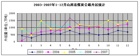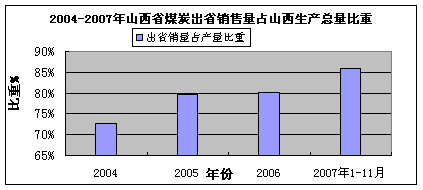 2007年1-11月份累計(jì)煤炭出省銷售量48615萬噸已經(jīng)超過2006年全年累計(jì)煤炭出省銷售量46641萬噸,增幅1974萬噸。