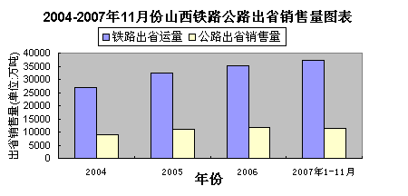 2004-2007年11月份山西省煤炭鐵路,公路出省銷售量逐年攀升