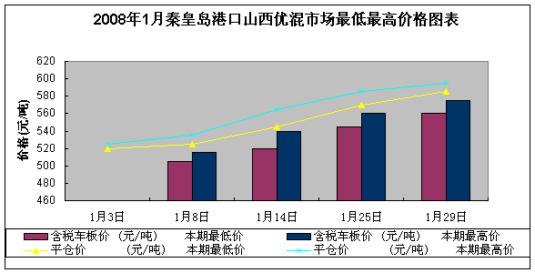 2008年1月份秦皇島港口山西優(yōu)混市場價格