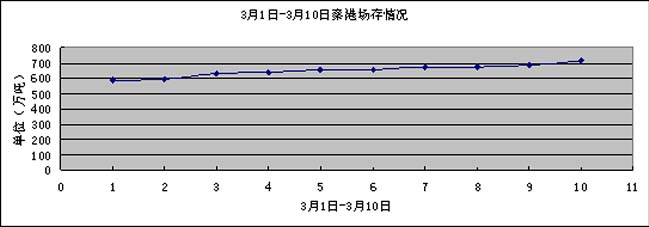 3月1日-3月10日這段時(shí)間內(nèi),秦港場(chǎng)存在上月下旬上升之后,本月上旬繼續(xù)保持上升態(tài)勢(shì),上升到了710萬噸以上.秦港場(chǎng)存的上升, 使一些煤種出現(xiàn)了滯港現(xiàn)象,同樣使本地煤炭市場(chǎng)的價(jià)格梢有回落.