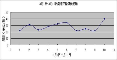 3月1日-3月10日這一周時(shí)間內(nèi),下錨煤炭船舶最多的一天為40艘,最少的一天為22 艘。其中3月10日下錨煤炭船舶最多為40艘; 3月1日下錨煤炭船舶最少為22艘;3月2日下錨煤炭船舶為31艘;3月3日、7日、9日下錨煤炭船舶在23艘左右;3月4日、8日下錨煤炭船舶在27艘左右;3月5日、6下錨煤炭船舶在33艘左右。秦港下錨船舶比上月下旬的數(shù)量有所增加,但數(shù)量仍然教少; 主要原因是本地煤炭?jī)r(jià)格仍然較高,南方電廠煤炭需求有所緩減,所以來港裝船煤炭船舶數(shù)量仍然較少.