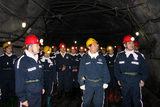 這天,國務(wù)院僑辦副主任任啟亮、國務(wù)院僑辦經(jīng)濟(jì)技術(shù)司司長譚天星、淮北市副市長方宗澤、濉溪常委、常務(wù)副縣長張紅玉等一行30余人,一到臨渙煤電公司就在該公司董事長、總經(jīng)理韓流、黨委書記楊軍、副總經(jīng)理、安監(jiān)長周曙光的陪同下,深入百米井下,現(xiàn)場視察了礦井安全生產(chǎn)工作。在井下,國務(wù)院僑辦、市、縣領(lǐng)導(dǎo)一行30余人,參觀了臨渙煤電公司井下運(yùn)輸系統(tǒng)、行人大巷、主井提煤系統(tǒng)、井下生產(chǎn)調(diào)度中心、中央變電所、主排水泵房、副井提升系統(tǒng)等。視察過程中,臨渙煤電領(lǐng)導(dǎo)還向國務(wù)院僑辦、市、縣領(lǐng)導(dǎo),介紹了臨渙煤電公司礦井安全生產(chǎn)情況、井下生產(chǎn)環(huán)境和采區(qū)布置、質(zhì)量標(biāo)準(zhǔn)化創(chuàng)建、井下文明生產(chǎn)環(huán)境變化等情況。通過視察,國務(wù)院僑辦副主任任啟亮一行深有感觸地說:總認(rèn)為煤礦下井工人是一身汗水,滿臉煤灰,沒有想到臨渙煤電井下環(huán)境像花園,一路走來,巷道燈光通明,壁畫連綿,花草搖曳,特別是井下中央變電所一塵不染,處處體現(xiàn)出人性化,職工的井下生產(chǎn)作業(yè)環(huán)境有了這么大的變化。井下生產(chǎn)調(diào)度也實(shí)現(xiàn)了計(jì)算機(jī)聯(lián)網(wǎng)控制,運(yùn)輸、提升等全部機(jī)械化、數(shù)字化控制,處處彰顯出現(xiàn)代化礦井的風(fēng)采。
