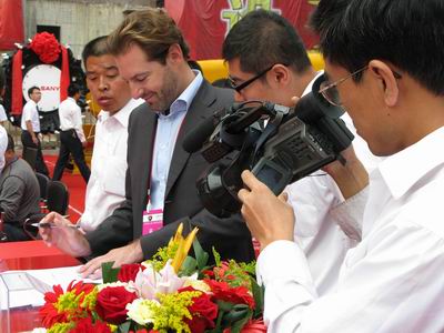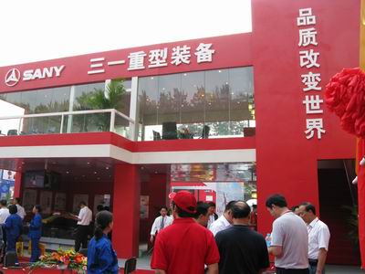 三一重型裝備有限公司雖然沒有占據(jù)最大的展臺,也沒有擁有最好的展位,但無疑卻是展會現(xiàn)場的一個亮點。首先,鮮亮的紅色布景就吸引大部分觀眾的眼球;其次是展臺前面一排昂首向天的掘進機氣勢磅礴;再次,公司邀請了一支專業(yè)的舞蹈隊表演,現(xiàn)場氣氛熱烈;最后是一支董事長親自帶隊的近百人龐大服務團隊,表現(xiàn)十分活躍。