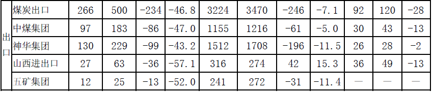 2008年1-8月份我國四大集團(tuán)公司煤炭出口情況