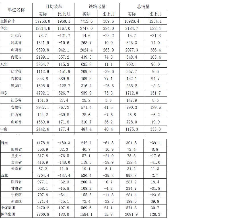 當(dāng)前位置:首頁(yè) -> 行業(yè)統(tǒng)計(jì)數(shù)據(jù) -> 重點(diǎn)礦統(tǒng)計(jì) -> 煤炭運(yùn)銷(xiāo)