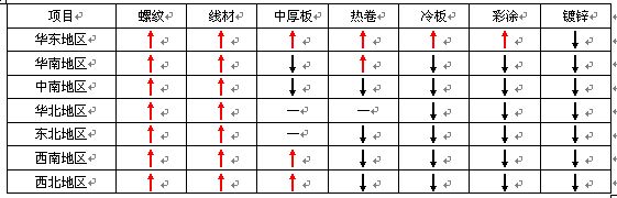 從上述市場(chǎng)的變化情況看,線材、螺紋是全國(guó)范圍內(nèi)的上升走勢(shì)。華東市場(chǎng)除鍍鋅外其他品種均有所上漲;除華東市場(chǎng)外,中厚板漲跌各異,薄板內(nèi)產(chǎn)品幾乎仍處于下跌通道。