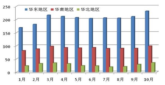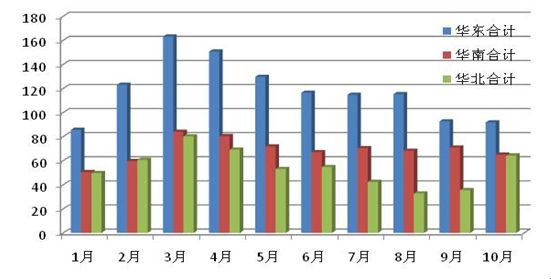 目前價(jià)位最高的地區(qū)在華南和東北地區(qū),最低價(jià)位在華北地區(qū)。