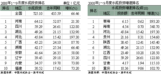 災(zāi)后重建對四川水泥行業(yè)的拉動趨勢未減,企業(yè)投資依然激情高漲,投資總額為59.29億元,同比增長122.80%。