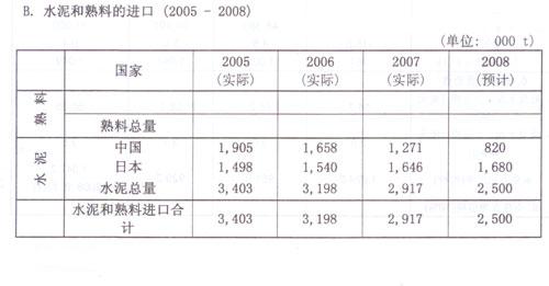 2008年預(yù)計(jì)韓國(guó)國(guó)內(nèi)水泥消費(fèi)量可達(dá)5100萬(wàn)噸,其中包括2500萬(wàn)噸的進(jìn)口水泥。這幾乎與2007年的水平持平。國(guó)內(nèi)銷售前景預(yù)計(jì)今年將達(dá)到4850~‘噸,與2007年相比,可增長(zhǎng)1.2%。
