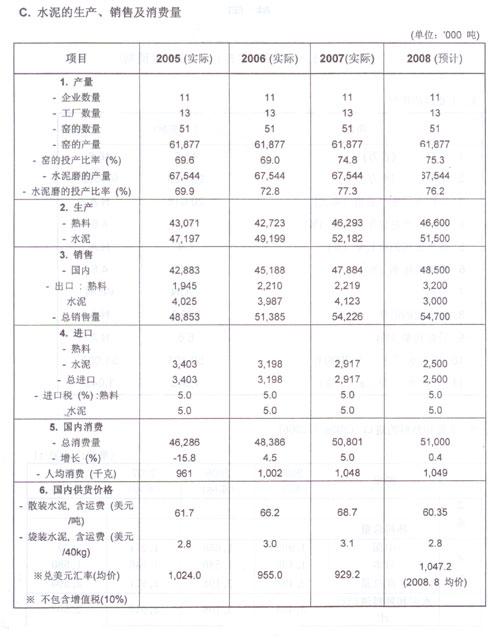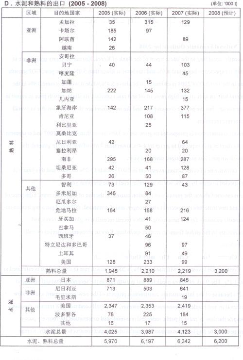 韓國(guó)水泥消費(fèi)量在2008年預(yù)計(jì)可以達(dá)到5100萬(wàn)噸,只比去年增長(zhǎng)大約0.4%。盡管住宅用建筑和住房市場(chǎng)持續(xù)低迷,公共基礎(chǔ)設(shè)施的建設(shè)項(xiàng)目和非住宅建筑的復(fù)蘇將對(duì)水泥的需求起到推動(dòng)作用。