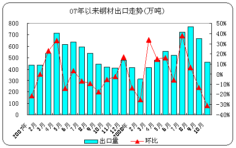 10月鋼材、鋼坯進出口情況表(萬噸)