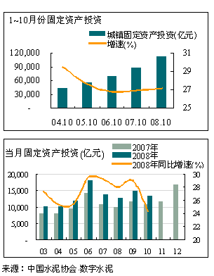 1~10月份全國城鎮(zhèn)固定資產(chǎn)投資為11.32萬億,同比增長27.20%,與前兩年相比略有上漲。