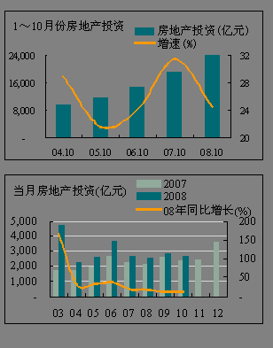 各省市情況:1~10月份,全國大部分地區(qū)累積房地產(chǎn)投資同比增速在平均水平以上,但房地產(chǎn)投資大省已經(jīng)出現(xiàn)回落,如房地產(chǎn)投資仍居全國房地產(chǎn)投資額首位的江蘇省,但從1~10月份累積投資額增速看,僅居全國中等水平,10月份當月房地產(chǎn)投資仍保持正增長,是全國僅有的8個環(huán)比投資增加的省市之一;北京受奧運會影響,1~10月份的房地產(chǎn)累積投資額為全國同比唯一負增長的地區(qū),10月份的房地產(chǎn)投資額環(huán)比增加了59.72%。