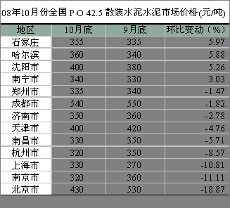 京津唐地區(qū)的北京、天津,華東江蘇、上海、浙江、江西、山東,西南四川、中南河南的價格出現(xiàn)了不同程度的下降,其中以北京價格下降幅度最大,主要是奧運期間水泥有價無市,交易的正;偈箖r格逐漸趨于正常水平。