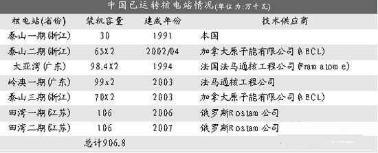 目前,中國擁有11臺運轉中的核電機組,總裝機容量達906.8萬千瓦。到2020年,中國核電廠址容量可以滿足運行4000萬千瓦、在建1800萬千瓦的目標。據(jù)介紹,目前中國核工業(yè)集團、中國廣東核電集團、中國電力投資集團三大巨頭控股了國內所有的核電項目。