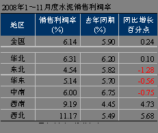 從發(fā)布數(shù)據(jù)看,今年西北、西南的利潤率表現(xiàn)要好于其他地區(qū)。主要是由于這些區(qū)域內(nèi)受基礎(chǔ)設(shè)施、能源基地建設(shè)等因素拉動,水泥需求旺盛;而華東、中南地區(qū)受成本上升、市場下行的影響,利潤率較2007年略有所下降。
