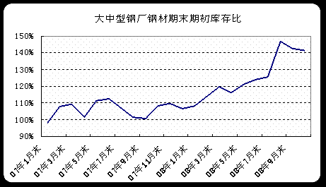 今年二季度,價格繼續(xù)高位拉漲,高價位明顯抑制了終端需求釋放和資源流通,鋼廠庫存水平逐漸上升。進入三季度以后,行情加速下跌,市場信心嚴重受挫,下游企業(yè)和代理商訂貨積極性普遍下挫,出口量銳減,廠內庫存積壓增多,8月末全國大中型企業(yè)庫存總量達到949萬噸,9、10月雖有所下降,但仍處于較高水平。