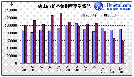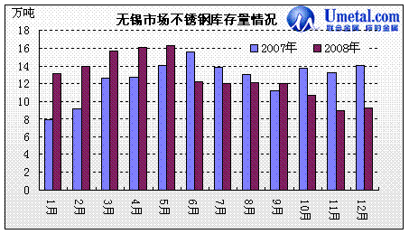 08年1季度國內(nèi)不銹鋼產(chǎn)量比去年同期略有增加,但是由于今年年初不銹鋼焊管及相關(guān)制品出口關(guān)稅的增加,導(dǎo)致出口需求萎縮;另外08年初國家為了控制通貨膨脹,采取緊縮的貨幣政策使得廣東浙江沿海等地的不銹鋼下游企業(yè)紛紛因資金鏈條緊張、訂單減少等因素的影響,中小企業(yè)破產(chǎn)、轉(zhuǎn)產(chǎn)現(xiàn)象嚴(yán)重,使得國內(nèi)不銹鋼需求量增幅出現(xiàn)放緩,因而在產(chǎn)量增加,需秋減少的情況下,市場庫存量在3、4、5這3個月內(nèi)呈現(xiàn)穩(wěn)步攀升的狀況,甚至無錫、佛山兩大不銹鋼市場在5月份的庫存量紛紛達(dá)到歷史最高水平。
