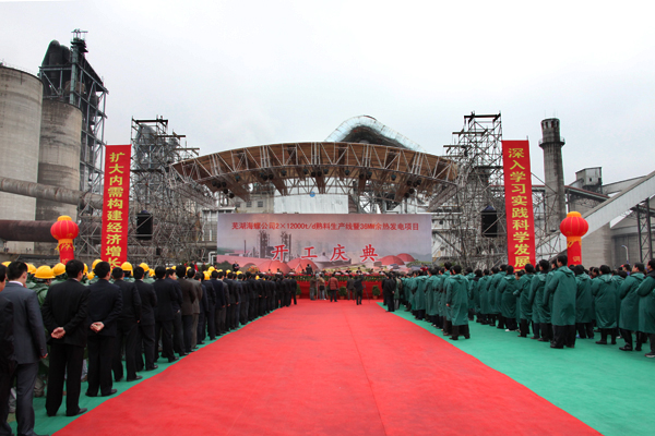 2009年2月27日,由安徽海螺集團(tuán)公司投資興建的蕪湖海螺公司三期兩條日產(chǎn)12000噸熟料生產(chǎn)線及配套的36兆瓦余熱發(fā)電項(xiàng)目正式破土動(dòng)工。該項(xiàng)目建成投產(chǎn)后,蕪湖海螺公司熟料總產(chǎn)能將突破1500萬噸,余熱發(fā)電能力將增加到6億度,成為當(dāng)今世界最大的水泥熟料生產(chǎn)基地。同時(shí),對(duì)加速安徽省水泥工業(yè)結(jié)構(gòu)調(diào)整、推進(jìn)節(jié)能減排、增加社會(huì)就業(yè)、繁榮地方經(jīng)濟(jì),將會(huì)發(fā)揮重要作用。