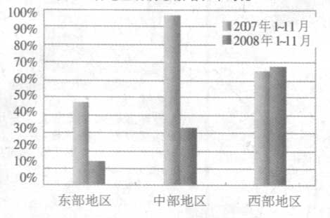 從地區(qū)看,經(jīng)濟(jì)效益增速回落最快的是中部地區(qū),而西部地區(qū)繼續(xù)保持增長態(tài)勢。2008年1~11月東部地區(qū)實(shí)現(xiàn)利潤總額為470億元,比上年同期增長13.9%,增速同比回落33.2個百分點(diǎn);中部地區(qū)實(shí)現(xiàn)利潤總額為263億元,比上年同期增長33.1%,增速同比回落63.2個百分點(diǎn),黑龍江和湖南利潤總額同比回落幅度較大,分別回落了296個和101個百分點(diǎn);西部地區(qū)實(shí)現(xiàn)利潤總額比上年同期增長67.5%,增速同比加快2.4個百分點(diǎn)。