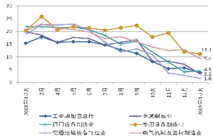 從工業(yè)主要產品產量的增減情況看,金屬切削機床、飼料加工機械、包裝專用設備、小型拖拉機、機車、冷柜、空氣調節(jié)器等均是同比回落20%以上;汽車基本上是零增長;民用鋼質船舶雖然同比增長了66.2%,但是比2008年后兩個月相比,平均月量下降了121萬總噸,下降幅度達35.5%。即使同2008年下半年相比,平均每月下降13萬總噸,降幅5.6%。