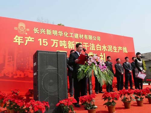 2009年3月26日,國(guó)產(chǎn)首條年產(chǎn)15萬(wàn)噸白水泥熟料新型干法水泥生產(chǎn)線在浙江長(zhǎng)興新明華化工建材有限公司舉行開(kāi)工典禮,有關(guān)領(lǐng)導(dǎo)及嘉賓200余人參加了開(kāi)工典禮。