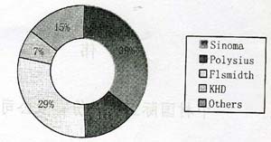 2007年下半年以來,美國次貸危機(jī)逐漸演變?yōu)榻鹑谖C(jī),并逐漸向全球?qū)嶓w經(jīng)濟(jì)滲透,全球經(jīng)濟(jì)面臨著嚴(yán)峻的考驗。金融危機(jī)對全球水泥技術(shù)裝備工程業(yè)的影響略有滯后,2008年上半年行業(yè)市場仍延續(xù)了2007年需求旺盛的態(tài)勢,下半年,金融危機(jī)影響逐漸顯現(xiàn),總體影響較為明顯。受金融危機(jī)影響,行業(yè)主要服務(wù)商大都出現(xiàn)了部分所簽訂合同被取消或緩建的情況,尤其以歐美市場為主要市場的服務(wù)商,所受影響可能更大些。這場危機(jī)對業(yè)內(nèi)企業(yè)來講既是場困境,也是場考驗,只有真正能為業(yè)主提供“比較價值”服務(wù)的企業(yè)才會在危機(jī)中較好的存活甚至獲益。在金融危機(jī)形勢嚴(yán)峻的2008年,中材國際新簽生效海外合同額327億元(扣除受影響項目)同比增長了177%,按照國際知名研究機(jī)構(gòu)近期公布的數(shù)據(jù),中材國際2008年國際市場份額達(dá)35%,位居全球第一(見下圖)。國際水泥技術(shù)裝備工程業(yè)在金融危機(jī)中實現(xiàn)了競爭格局的轉(zhuǎn)變。