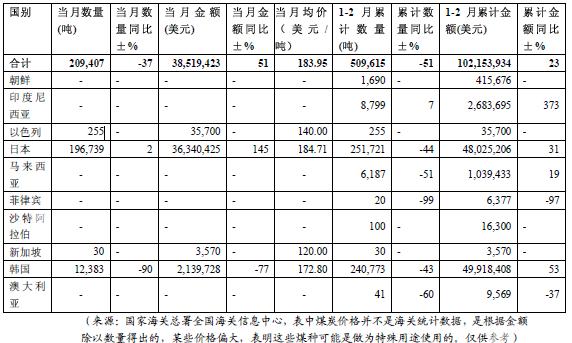 2009年2月我國無煙煤出口分國別統(tǒng)計