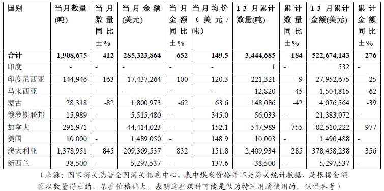 2009年3月我國煉焦煤進口分國別統(tǒng)計