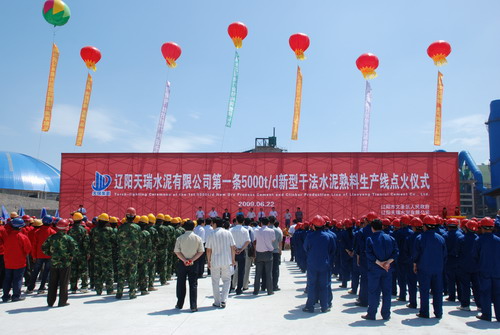 6月22日上午10點(diǎn)18分,隨著遼陽(yáng)市副市長(zhǎng)陳強(qiáng)點(diǎn)燃手中火炬,遼陽(yáng)天瑞水泥第一條年產(chǎn)5000噸新型干法水泥生產(chǎn)線正式點(diǎn)火。該生產(chǎn)線是遼陽(yáng)市工業(yè)重點(diǎn)項(xiàng)目之一,投資10億元,工程自2007年12月開(kāi)工至今,期間,建設(shè)施工單位抓工期、搶進(jìn)度,加班加點(diǎn),克服困難,嚴(yán)格把關(guān),高標(biāo)準(zhǔn)、嚴(yán)要求進(jìn)行施工,保證了項(xiàng)目建設(shè)順利進(jìn)行。目前,已具備試車(chē)條件。