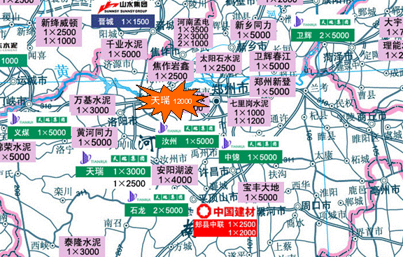 該條線的建設(shè)對天瑞來說,是天瑞水泥發(fā)展史上的里程碑,鄭州是河南最大的水泥消費(fèi)市場,而鄭州一直沒有大規(guī)模的生產(chǎn)線,直到去年才投產(chǎn)一條5000 t/d 生產(chǎn)線,而鄭州水泥市場主要從豫北的新鄉(xiāng)、焦作和豫中的平頂山運(yùn)入水泥和熟料。鄭州是天瑞的核心市場,天瑞在新鄉(xiāng)兩條5000 t/d 生產(chǎn)線;在平頂山汝洲一條5000 t/d,距鄭州近在咫尺;許昌中錦也是一步之遙;可以說天瑞在來對鄭州“圍城”的基礎(chǔ)上,又加強(qiáng)了火力,中心開花,這將更具威懾力。