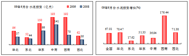 去年水泥投資突破1,000億元,今年有望達到1,800億元。中西部地區(qū)市場向好、各大集團的建線擴張,是水泥投資增長的主要動力。09年1~6月份,中南、西南地區(qū)水泥投資接近200億,其中四川水泥投資112億,河南、湖北、湖南、廣西、福建、山東和河北水泥投資都在40億左右。