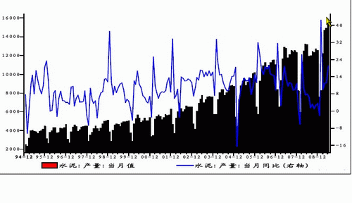 相關(guān)信息顯示:2009年上半年水泥行業(yè)繼續(xù)保持產(chǎn)銷增長、利潤上升的態(tài)勢,但利潤增速較上年同期明顯下滑,水泥價格有所下滑,地區(qū)分化顯著。新增產(chǎn)能的過快增長能否得到遏制,成為市場關(guān)注的焦點。 以下是對各相關(guān)數(shù)據(jù)的具體分析。 根據(jù)wind數(shù)據(jù)系統(tǒng)的統(tǒng)計信息:2009年1-6月,全國水泥產(chǎn)量為 73462萬噸,同比增長14.86%,增速高于上年同期約6.16個百分點。6月份水泥產(chǎn)量再創(chuàng)單月產(chǎn)量歷史新高,達到15760萬噸,同比增長 20.95%,增速高于上年同期13.05個百分點。見圖1: