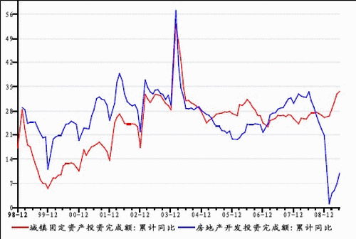 圖6 99年以來城鎮(zhèn)固定資產(chǎn)投資及房地產(chǎn)開發(fā)投資累計增速變化