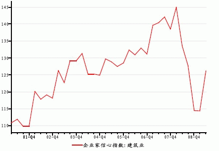 根據(jù)國家統(tǒng)計局數(shù)據(jù):2009年1-6月,我國城鎮(zhèn)固定資產(chǎn)投資53520億元,同比增長33.6%;增速比1-5月加快0.7個百分點。其中6月固定資產(chǎn)投資增速達35.25%,僅次于上月38.7%的增速。房地產(chǎn)開發(fā)投資增速也自09年2月觸底后逐步回升,顯示一定的復(fù)蘇態(tài)勢,但仍低于上年同期 23.6個百分點(具體見圖3)。建筑業(yè)的企業(yè)家信心指數(shù)也在2009年第一季度觸底后回升(具體見圖4)。房地產(chǎn)行業(yè)的復(fù)蘇及建筑業(yè)信心的恢復(fù)均使建材產(chǎn)品的需求有望保持較好的增長態(tài)勢。